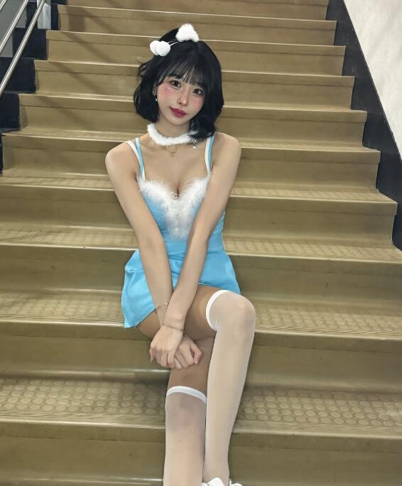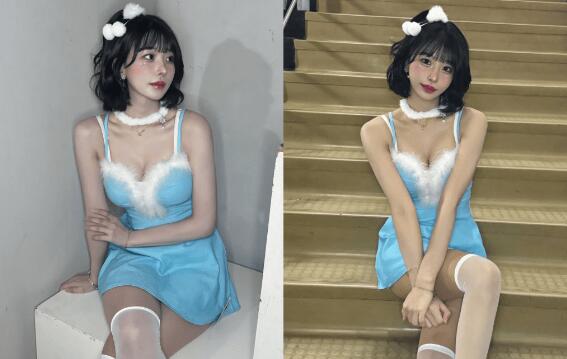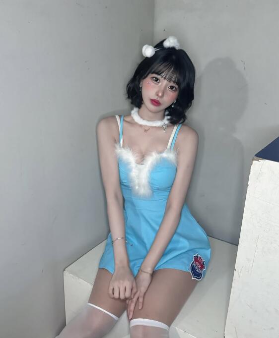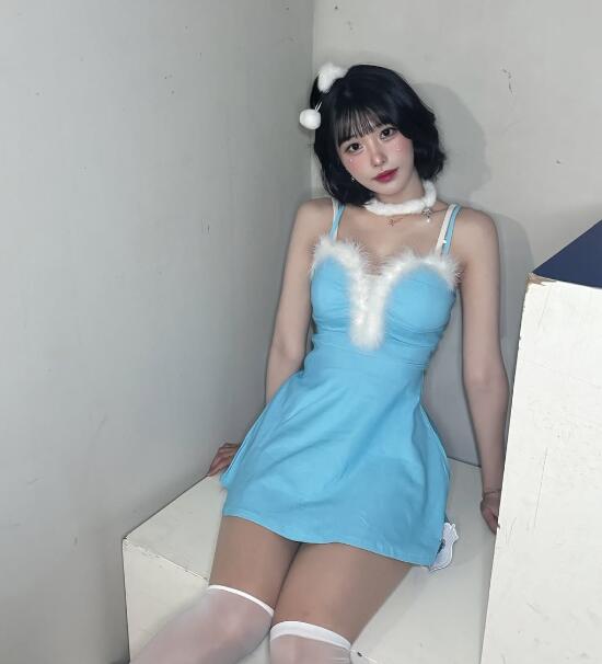 공개된 사진 속 천소윤은 하늘색 짧은 미니 원피스에 흰색 퍼 장식이 더해진 의상으로 청순함과 섹시함을 동시에 연출했다.
