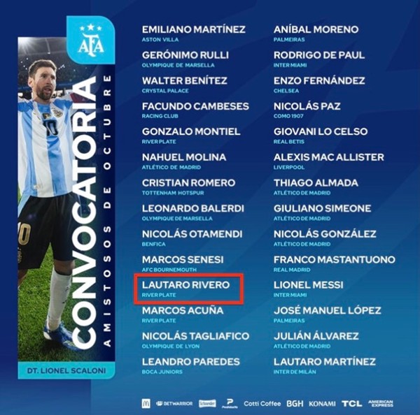 한편 처음 대표팀에 발탁된 인물도 있었다. 바로 라우타로 리베로였다. 영국 ‘더 선‘은 스칼로니 감독의 이러한 발탁을 조명했다. 매체는 6일 "이번 명단에 예상 밖의 선수들이 다수 포진했는데 그 중 가장 큰 화제를 모은 인물은 리베로다"라고 전했다.