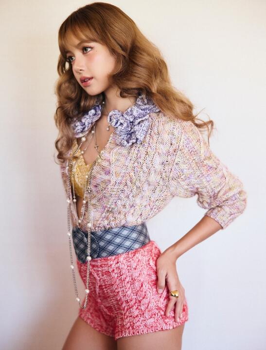 리사는 니트 크롭 상의와 핑크색 니트 숏 팬츠를 매치해 발랄하면서도 세련된 스타일을 완성했다. 여기에 화이트 힐과 다양한 액세서리를 더해 ‘패셔니스타’다운 면모를 과시했다. 시크한 표정으로 카메라를 응시하거나 환한 미소로 보는 이들을 무장해제시키는 등 팔색조 매력을 뽐내며 ‘인간 LV’의 정석을 보여줬다.