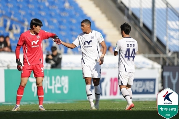 대구는 26일 울산문수경기장에서 열린 ‘하나은행 K리그1 2025’ 34라운드 울산 HD와 맞대결에서 1-1로 비겼다. 승점 28을 확보한 대구는 11위 제주SK(승점 35)와 격차가 7점이 됐다. 울산(승점 41)은 9위 제자리 걸음하면서 8위 FC안양(승점 42)과 간격을 1점으로 좁혔다.