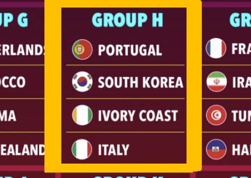 지난 2022 FIFA 카타르 월드컵에서도 만났던 포르투갈은 꾸준히 유럽의 강호로 꼽히는 팀이며, 코트디부아르도 이전 같지 않다고는 하나 여전히 조 2위 자리를 위협할 만한 아프리카의 복병이다. 이탈리아의 경우 굳이 설명할 필요 없이 모든 국가가 포트4에서 피하길 바라는 1순위로, 이탈리아가 조에 들어오면 그 조는 무조건 죽음의 조가 되는 것이나 다름없는 수준이다.