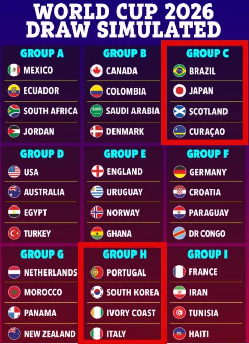 내년 열리는 2026 국제축구연맹(FIFA) 북중미 월드컵(캐나다·미국·멕시코 공동 개최)에서 한국은 포르투갈, 코트디부아르, 이탈리아와 같은 조에 배정되며 역대급 ‘죽음의 조‘에 떨어지는 반면 일본은 브라질을 제외하면 비교적 상대하기 수월한 팀들과 같은 조에 묶일 거라는 예상이다.