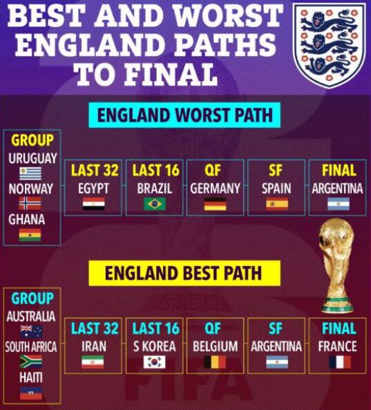 한편 조추첨 예측은 최상의 조와 죽음의 조가 공존한다. 앞서 더 선이 한 차례 시뮬레이션을 돌렸을 때는 생각하기 싫은 조합이 나왔다. 2포트에 오른 한국이 비교적 안전지대라 여겼는데 시뮬레이션 결과는 정반대였다. 한국이 만난 1포트는 포르투갈이다. 3포트에서는 코트디부아르, 4포트에서는 유럽 예선 플레이오프를 통과할 가능성이 있는 이탈리아가 배정됐다.