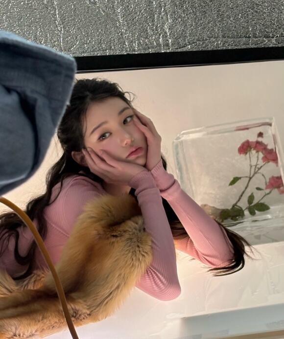 또 다른 사진에서 그는 180도 다른 분위기를 자아냈다. 장원영은 핑크색 골지 니트 톱에 브라운 컬러의 스커트, 그리고 풍성한 퍼(Fur) 아이템을 매치해 사랑스러운 겨울 여신으로 변신했다. 특히 카메라를 응시하며 턱을 괸 채 짓는 표정은 특유의 인형 같은 비주얼을 더욱 돋보이게 만들었다.