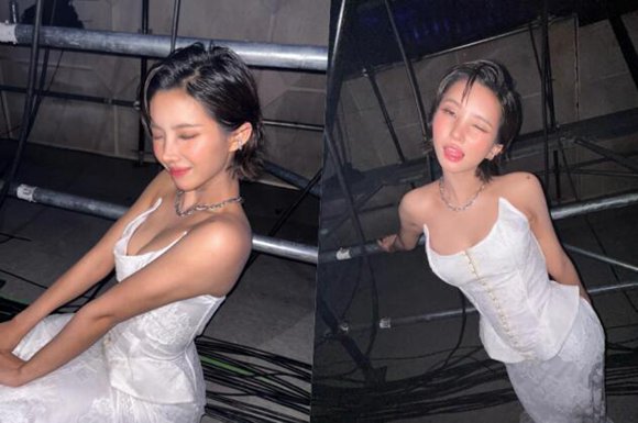 사진 속 전소연은 새하얀 레이스 드레스를 입고 다양한 포즈를 취하고 있다. 깊게 파인 네크라인으로 특유의 볼륨감을 과시하며, 우아하면서도 당당한 매력을 뽐냈다. 짧은 단발 헤어와 과감한 표정 연기 역시 전소연 특유의 카리스마를 더욱 돋보이게 했다.